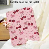 1pc Pink Bow, Cherry Pattern PU Leather Flip Cover Case With 360 Degree Rotating Stand And Pen Slot, Auto Sleep/Wake Function, Compatible With Samsung A9/A9+/S9/S9FE/A11/A11+/S11/S10 FE/S10 FE+/S10 Lite, Apple Air 5/6, Honor, Matepad, And Other Popular Models, Ideal For Back To School, Valentine's Day, Holiday Gifts