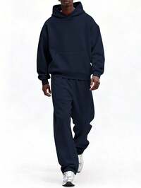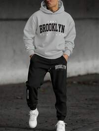 PAVTROSPAVTROS Men's Solid Color Long Sleeve Zip-Up Hoodie Set, Versatile For Daily Wear,Men's,Baggy,Best,Boyfriend,Summer,Vacation,Y2k,Retro,Friends,Waffle Textured Fabric Retro Print Sweatshirt Set For Men