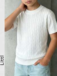 DazySHEIN Little Byeori Tween Boy Jacquard Contrast Color Knit Sweatshirt, Economic And Practical For First Day Of School, Can Be Paired With Boys Shirt, White Sweatpants, Jacket, Solid T-Shirt, Cartoon Shirt, Grey Hoodie, Sweatshirt, And Jeans,In Fall/Winter